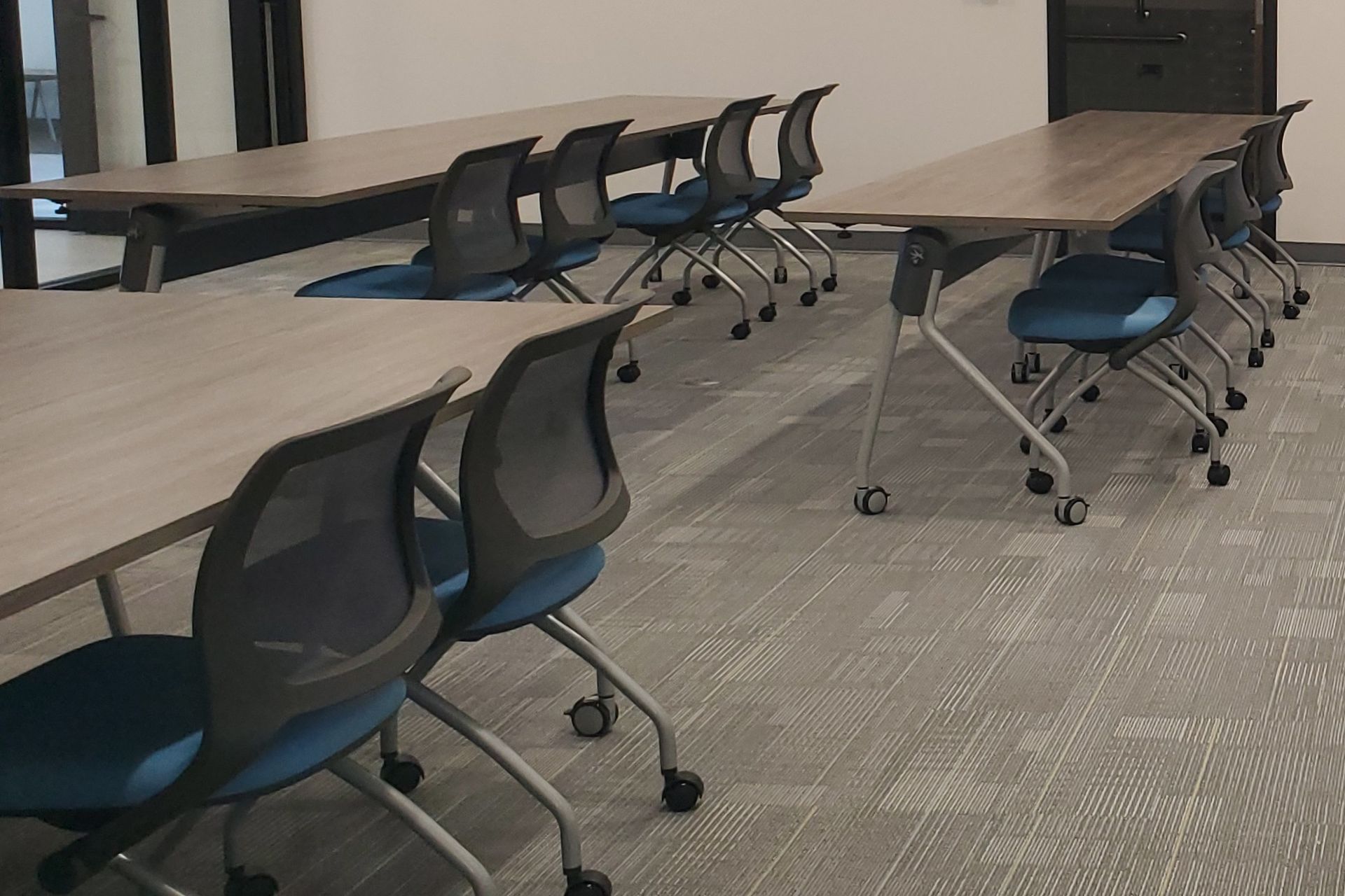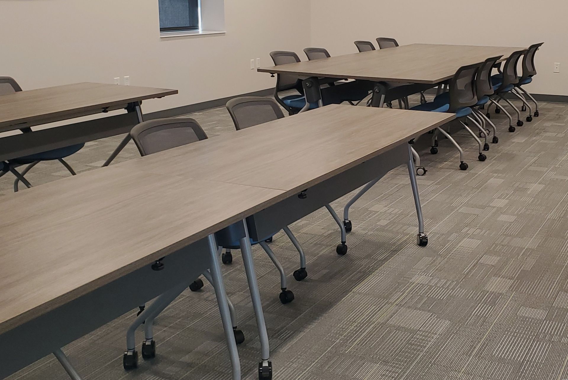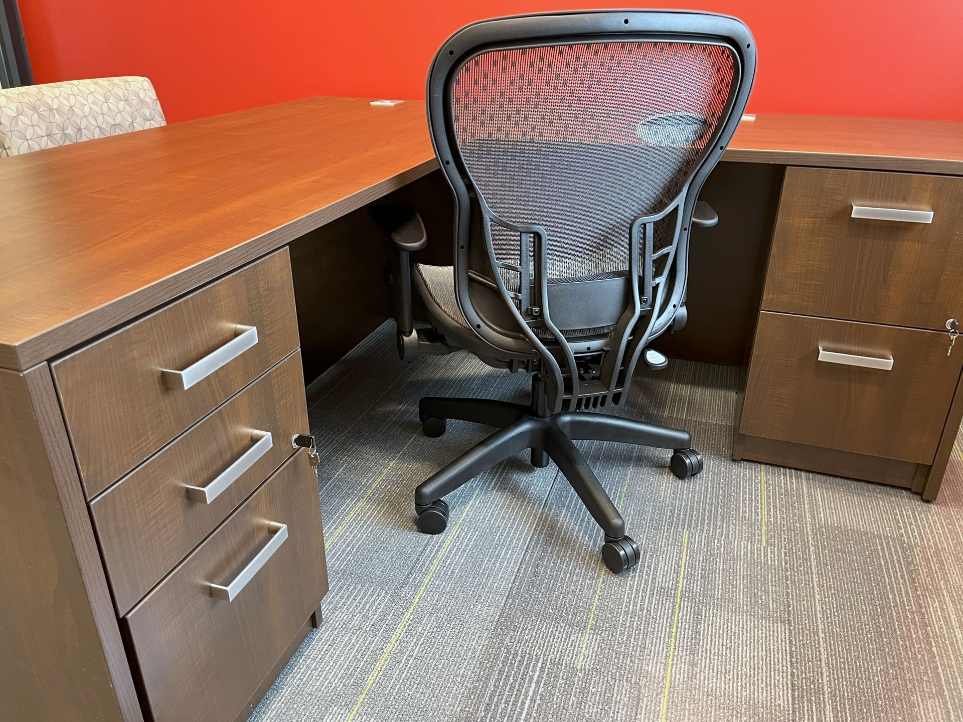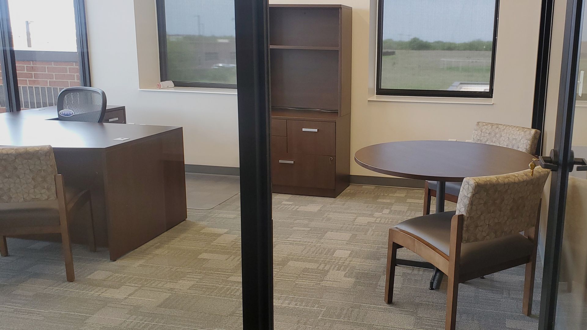 Classic wood tones, contemporary fabrics, and timeless furniture combine to create a sophisticated yet functional corporate office for this regional credit union.