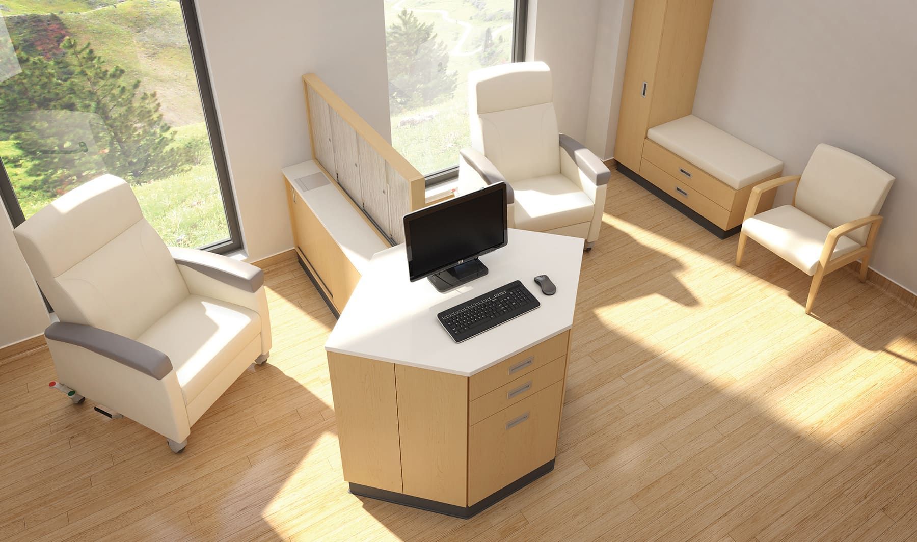 We partner with dozens of manufacturers to find the right furniture solution for every situation. Our range includes furniture for any healthcare setting: waiting rooms with options like bariatric seating and anti-microbial upholstery, nursing stations, lab spaces, and patient room furniture such as casegoods, sleepers, recliners, and gliders.