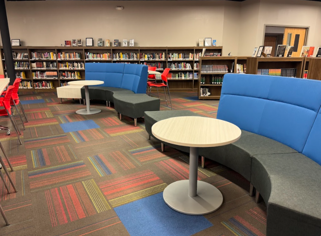 Bold and inspired educational spaces for a local private school, including media center and collaborative study areas.